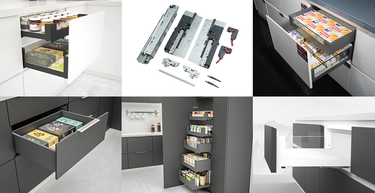 · Push-to-Open (с толкателем и возможностью установки опционального синхронизатора направляющих для оптимальной работы механизма на ящиках шириной более 600 мм);