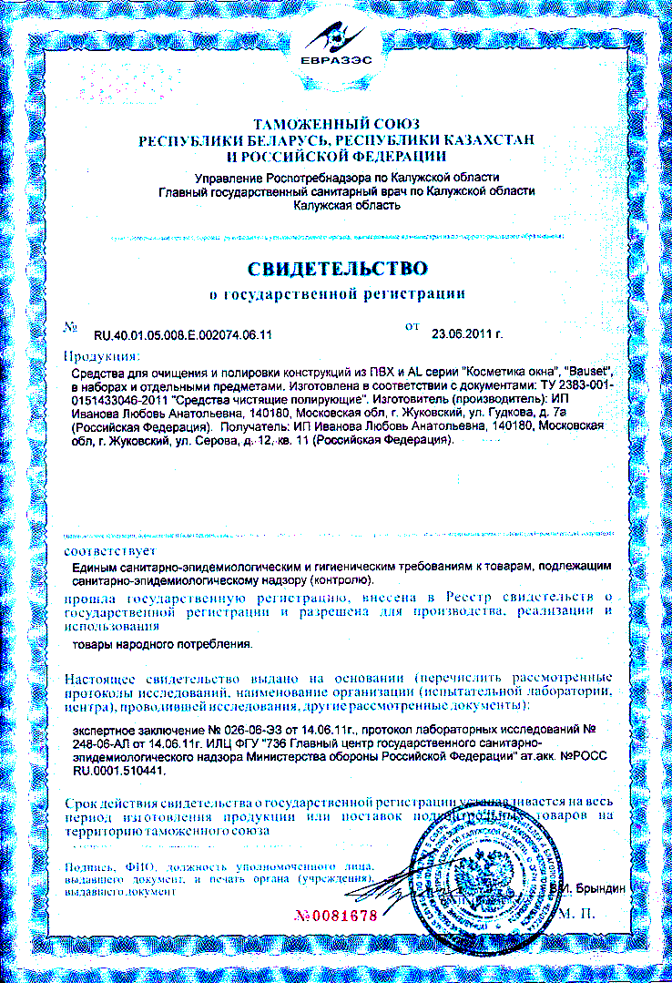 Косметика окна, Россия (т.м. Косметика окна; Bauset)