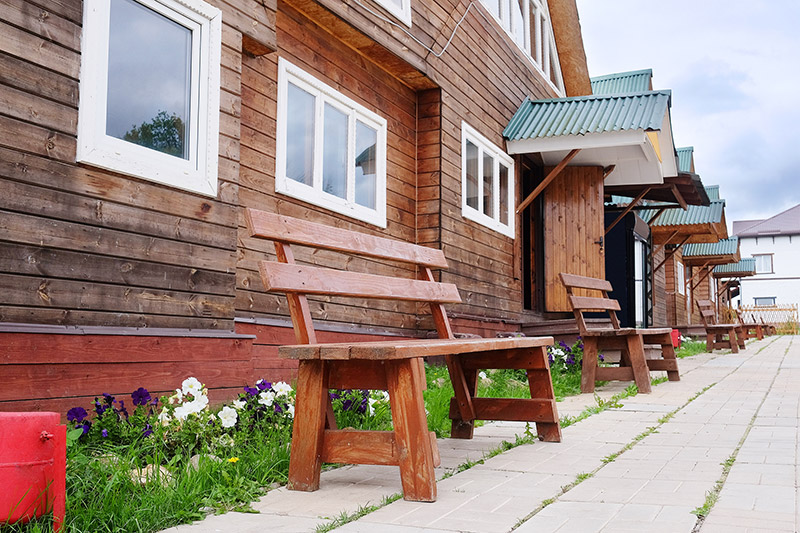 1. Закрыть древесину от попадания ультрафиолетовых лучей с помощью материалов для обшивки (сайдинг, фиброцементные плиты, блок-хаус и т.д.), но этот вариант спрячет всю красоту деревянного дома.
