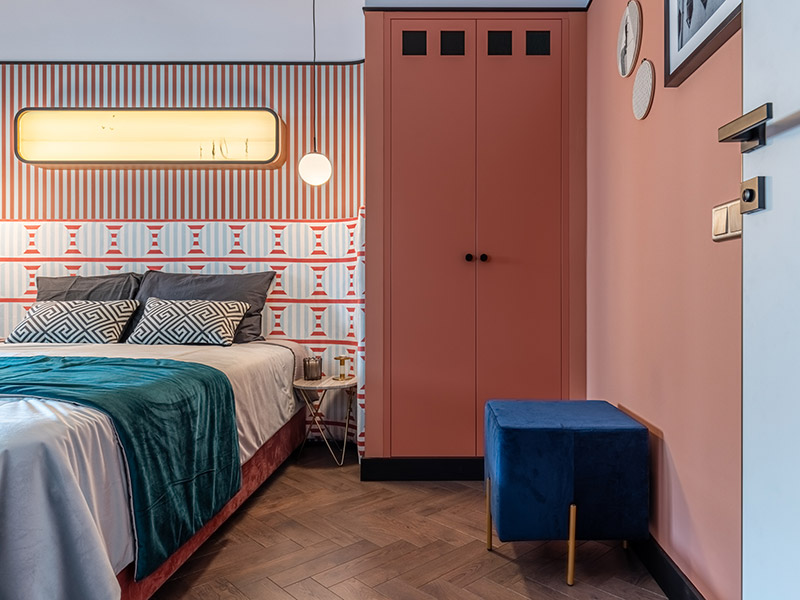 Представляем вашему вниманию один из выполненных проектов. Невзрачная спальная комната превратилась в яркое и стильное пространство кирпичного цвета. Источником вдохновения для автора проекта стали идеи художниц русского авангарда, широко известных, как амазонки русского авангарда, чьё творчество сегодня так же популярно, как и столетие назад.