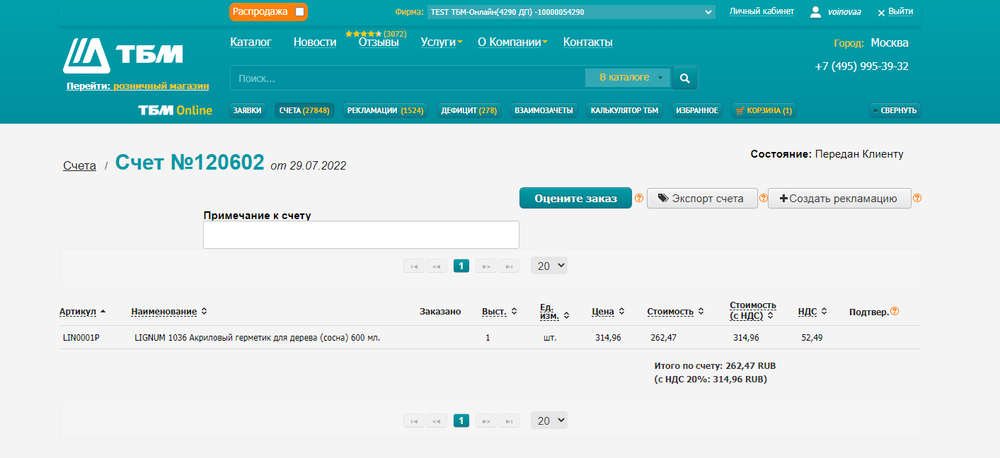Для улучшения сервиса доставки в систему электронной торговли ТБМ-Онлайн добавлена функция «Оцените заказ». Теперь вы сможете оценить работу менеджера и доставку по каждому счету.