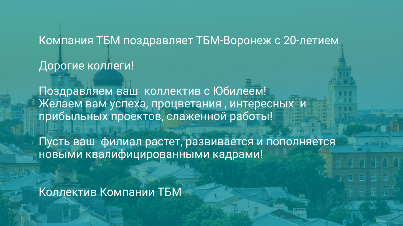 Поздравляем ТБМ Воронеж с 20-летием!