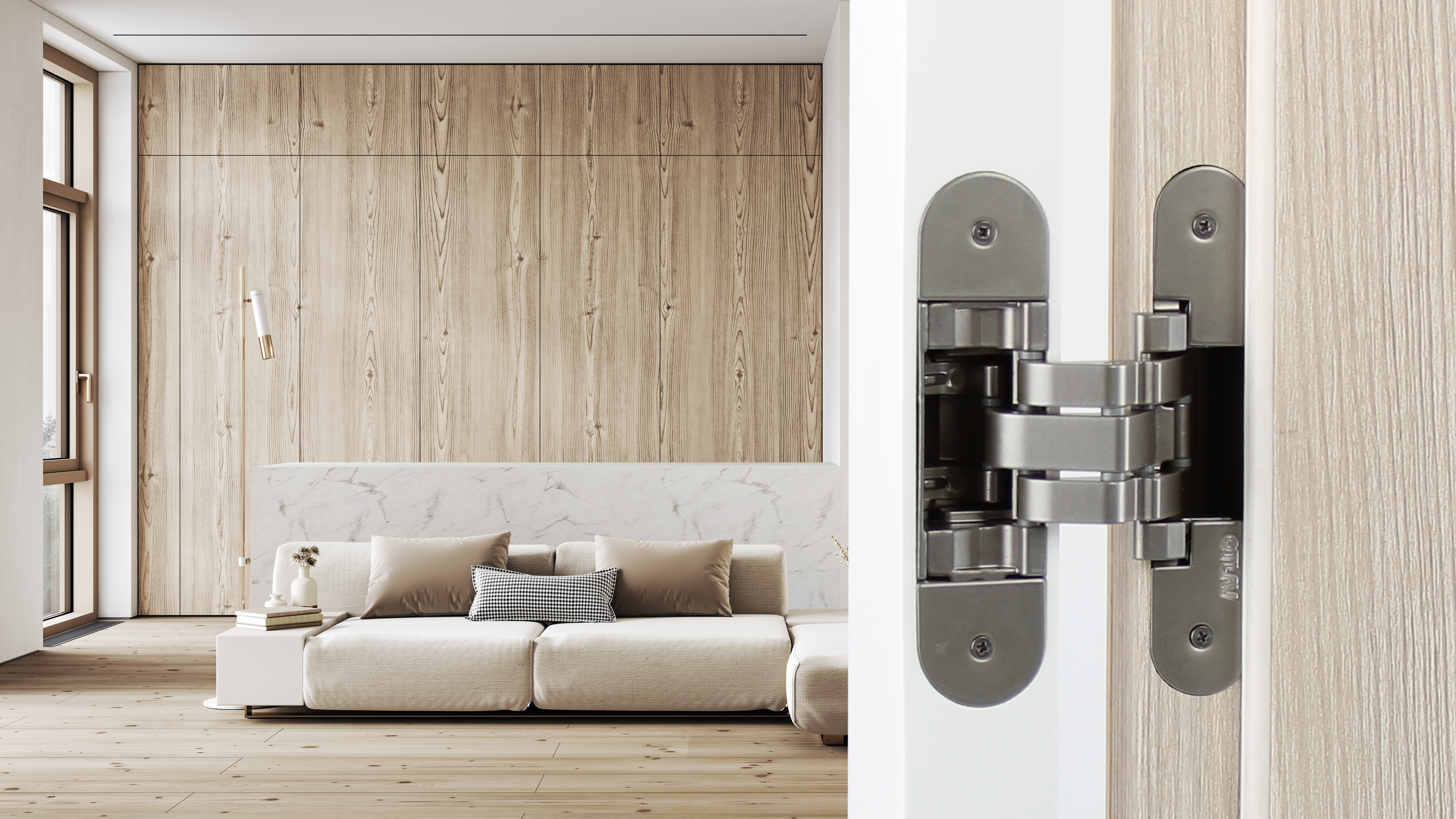 • Петля предназначена для монтажа на скрытых дверях без наличника и с алюминиевой коробкой, облицованной гипсокартоном, или деревянной коробкой с дверным полотном в одной плоскости с наличником;