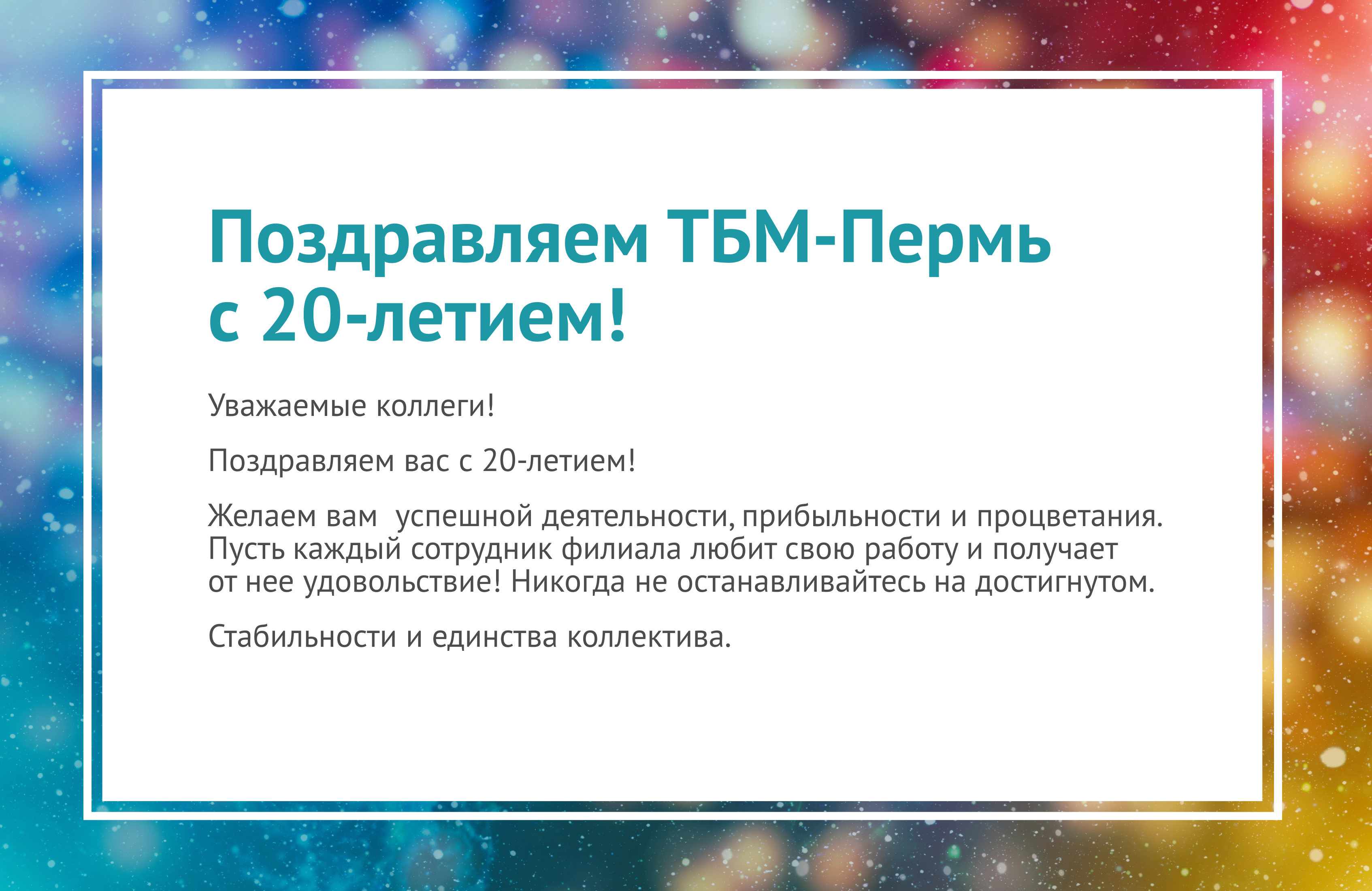 Поздравляем ТБМ-Пермь с 20-летием!