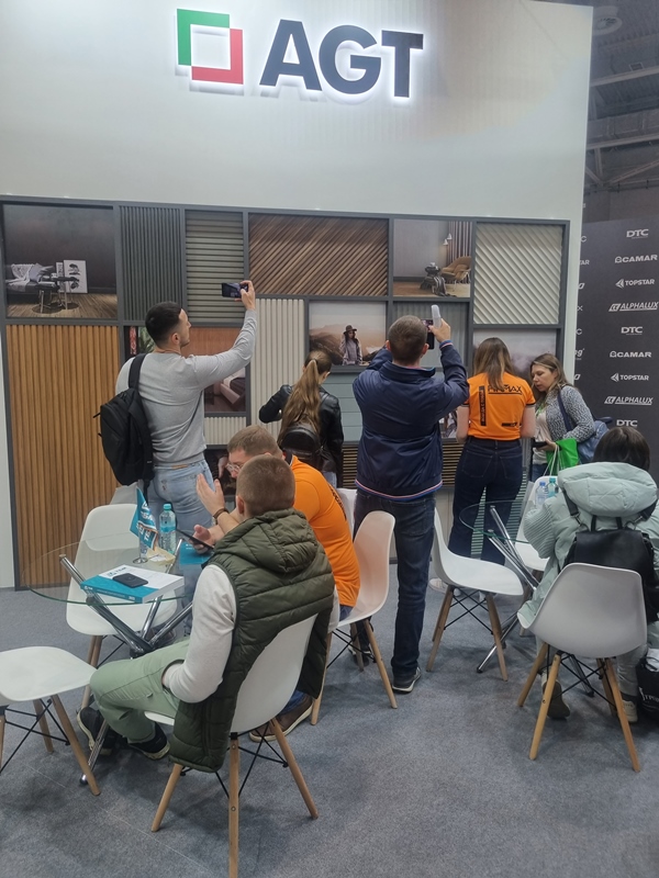 Особое внимание гостей выставки привлекла зона плитных материалов: новинки складской программы поставщика AGT (3Р панели, стеновые профили), новинки мебельных плит от испанского производителя Alvic. Одна из зон стенда была оформлена как панно, на котором были представлены возможные отделки из стеновых профилей AGT. Данная зона пользовалась популярностью среди дизайнеров, которые готовы использовать профили в своих проектах по отделке стен и зонированию пространства в сочетании с остальными продуктами.