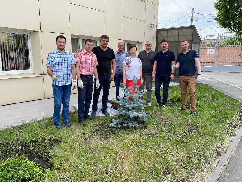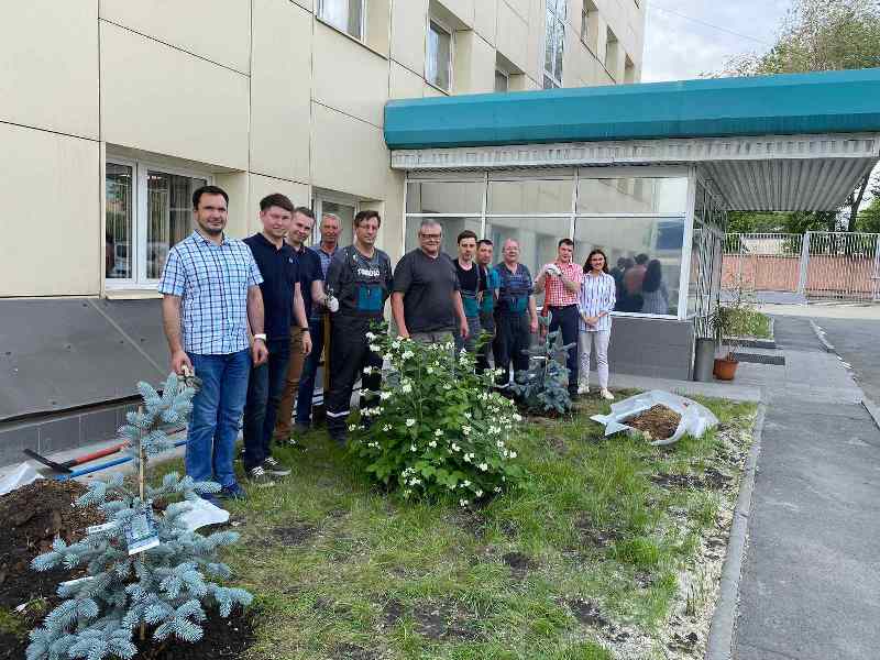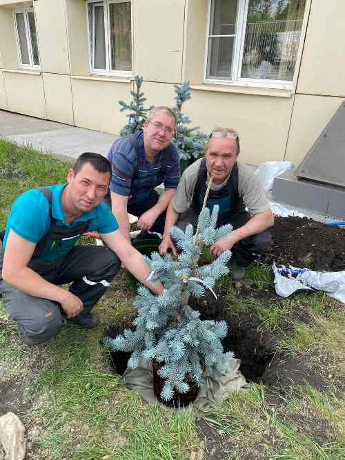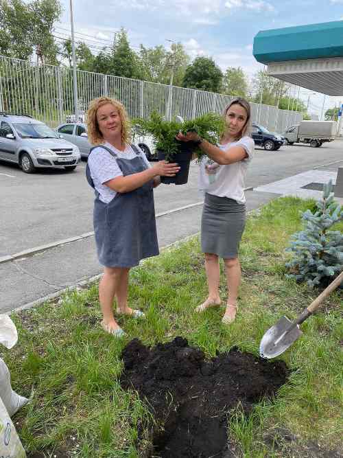 Дружный коллектив ТБМ-Челябинск озеленил прилегающую к офису территорию хвойными посадками. 31 мая на территории Компании были высажены голубые ели и можжевельник.