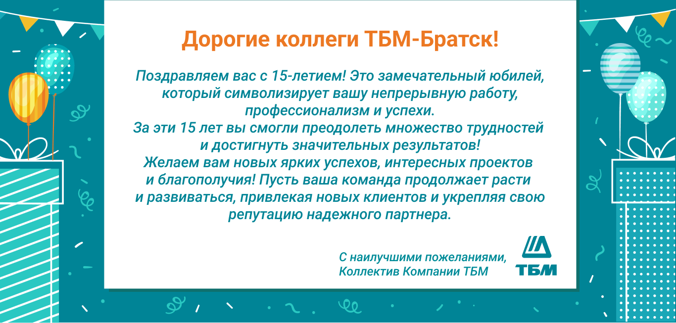 Поздравляем ТБМ-Братск с 15-летием!