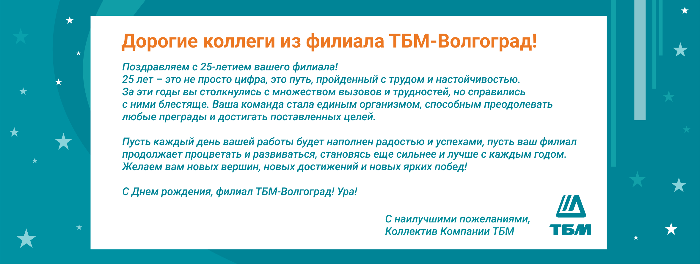 Поздравляем ТБМ Волгоград с 25-летием