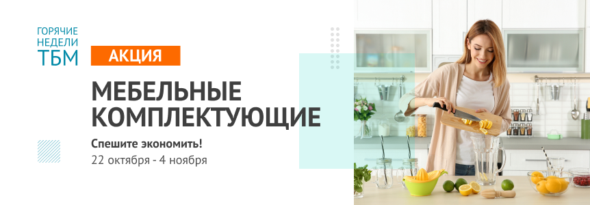 С 22 октября по 4 ноября в Компании ТБМ «Горячие недели» на мебельные комплектующие. Качественные товары по самым выгодным ценам ждут вас в разделе «Распродажа».