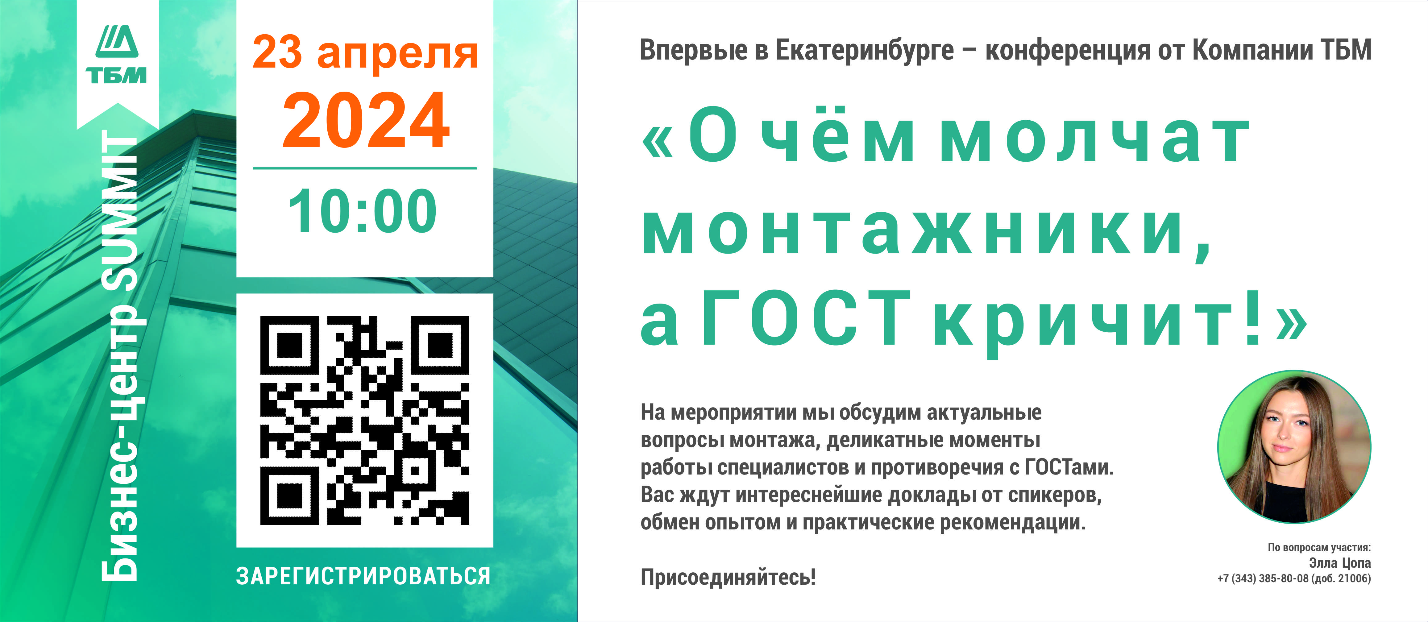 Приглашаем вас на конференцию, которая состоится 23 апреля 2024 г. в Екатеринбурге: «О чём молчат монтажники, а ГОСТ кричит!»