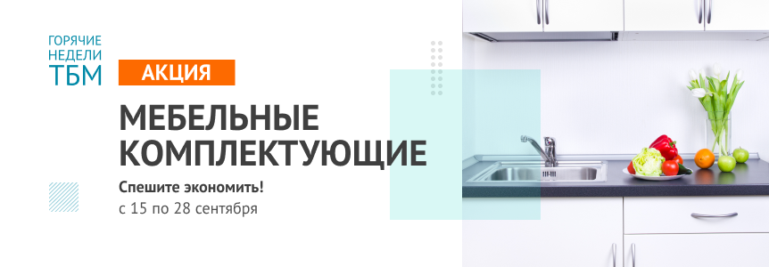 C 15 по 28 сентября в ТБМ «Горячие недели» на мебельные комплектующие.