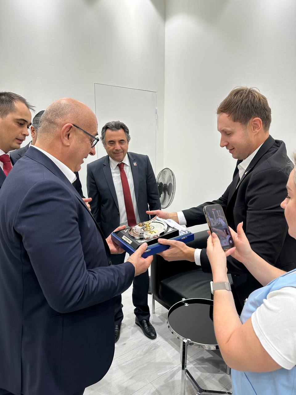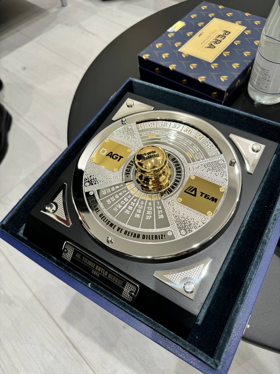Одним из ярких моментов выставки стал юбилей нашего стратегического партнера AGT- 40 лет инноваций и непрекращающегося развития, а также 20-летие плодотворного сотрудничества и надежного, перспективного партнерства. В честь этого события руководящий состав ТБМ в лице заместителя генерального директора Анатолия Ковердяева вручил генеральному директору AGT Мустафе Хулуси Сойлемезу памятный подарок — "Вечный календарь", который стал символом нашей общей истории и стремлением к новым достижениям. Календарь украшен логотипами обеих компаний и надписью "20 лет вместе" на золотой ручке. В знак благодарности и признательности за многолетнее сотрудничество, команда ПРД КМДК получила памятные значки AGT, как символ дружбы и символ совместных достижений.
