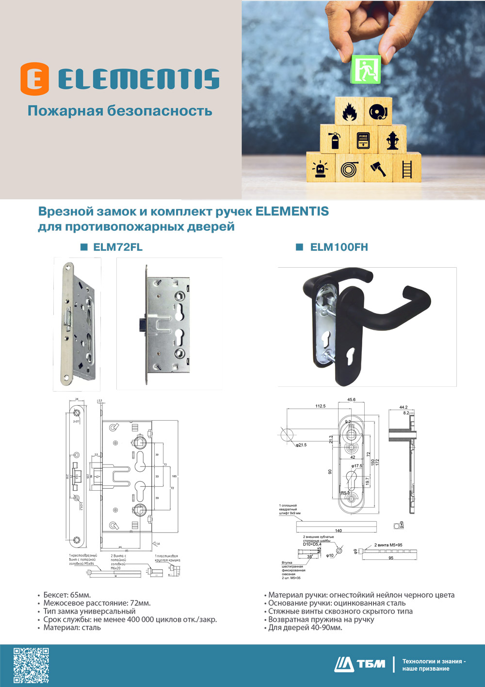 Предлагаем Вашему вниманию врезной замок и комплект ручек ELEMENTIS для противопожарных технических дверей.