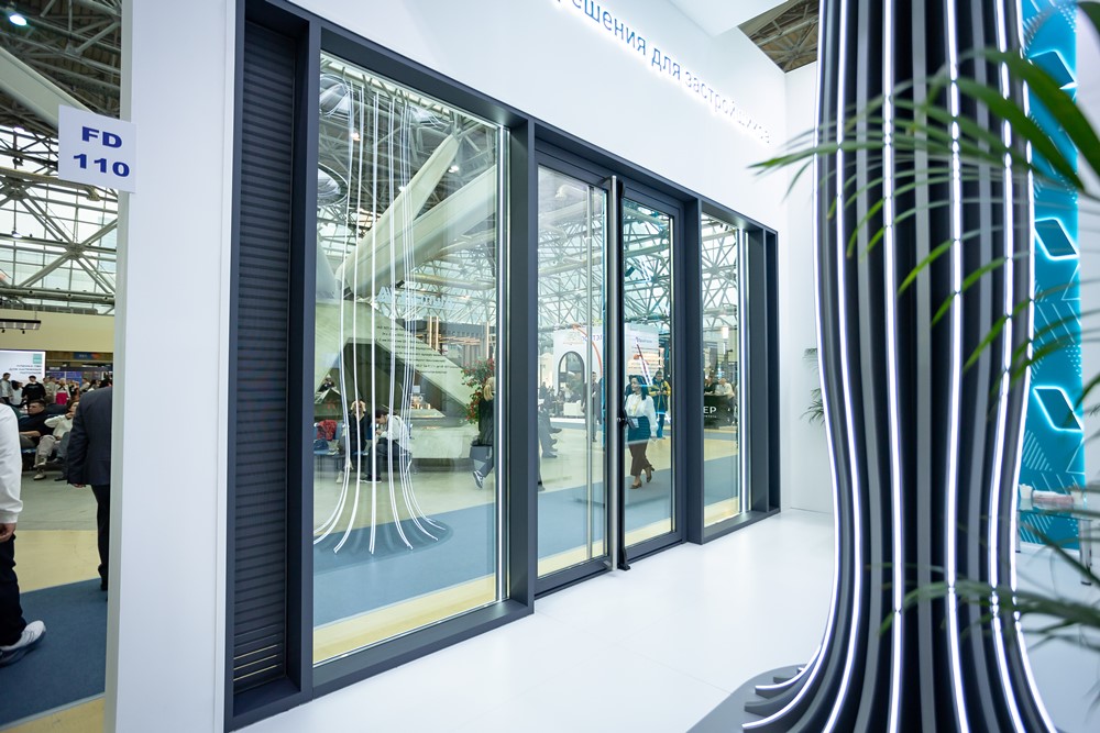 На стенде были представлены образцы зарекомендовавших себя конструкций на базе алюминиевой профильной системы Alumark: