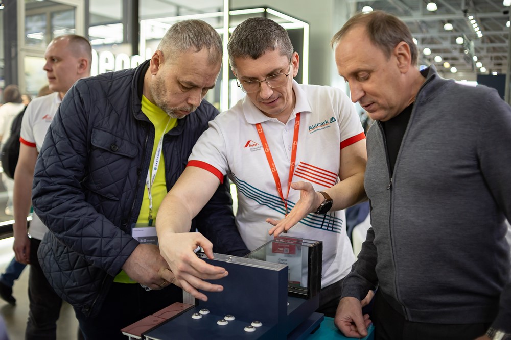 Компания ТБМ представила на своем стенде масштабную экспозицию современных комплексных решений для светопрозрачных конструкций на базе профильной системы Alumark и фурнитуры Roto. В течение четырех дней более 50 менеджеров, инженеров и продуктологов консультировали посетителей о тонкостях применения и расчетов представленных образцов конструкций.