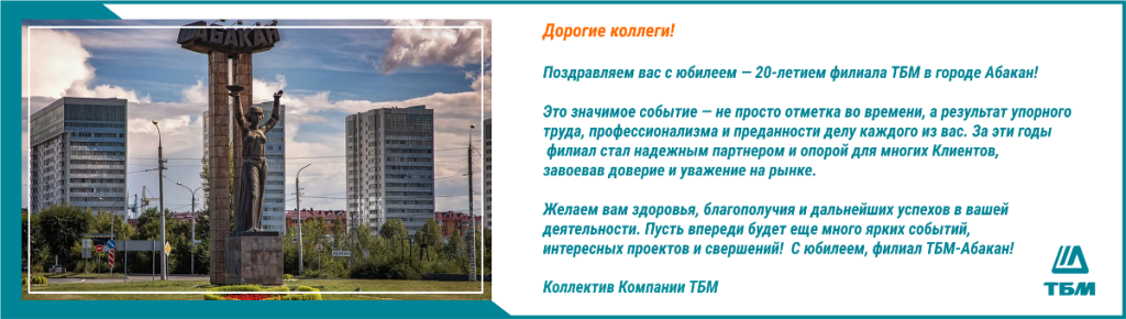 Компания ТБМ поздравляет с 20-летием филиал в г. Абакан!