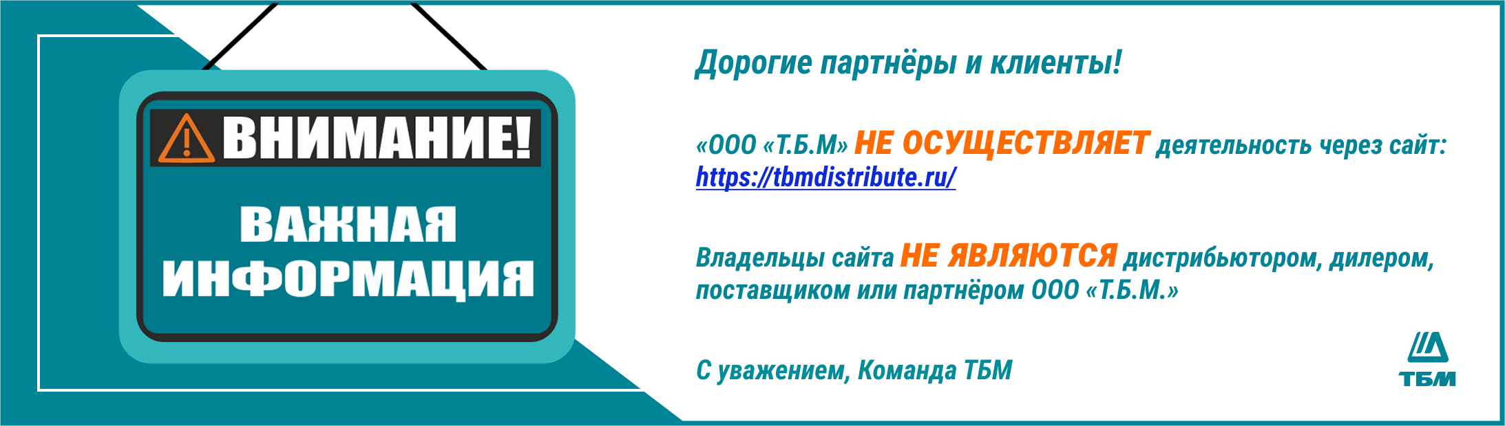 Сообщаем вам, что Компания ТБМ не осуществляет свою деятельность через сайт: tbmdistribute.ru. Владельцы данного сайта не являются дистрибьюторами, дилерами, поставщиками или партнёрами нашей компании.