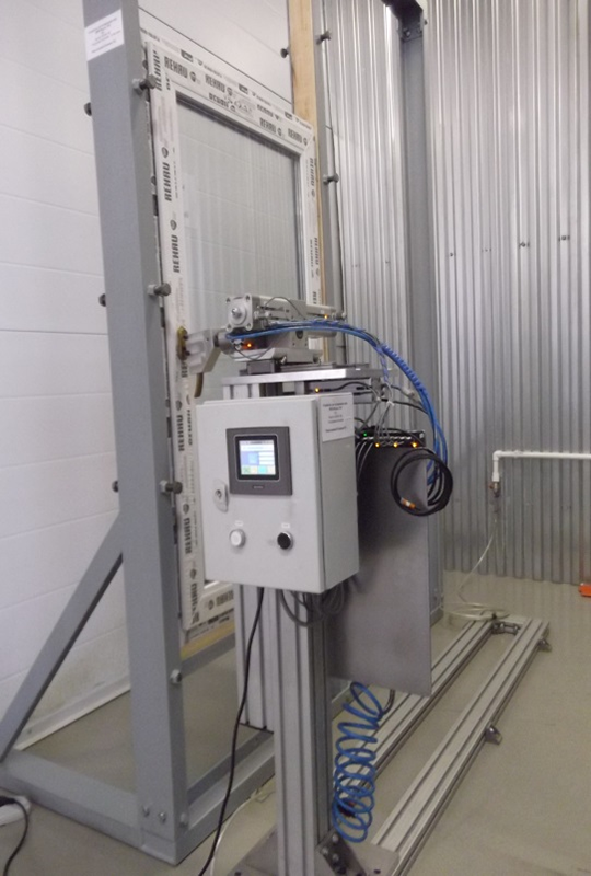 Стенд позволяет проводить испытания оконной и дверной фурнитуры на продолжительность функционирования для поворотно-откидных оконных блоков 20000 +1% циклов открывания-закрывания-откидывания, для дверных петель продолжительность 200000 циклов открывания-закрывания.