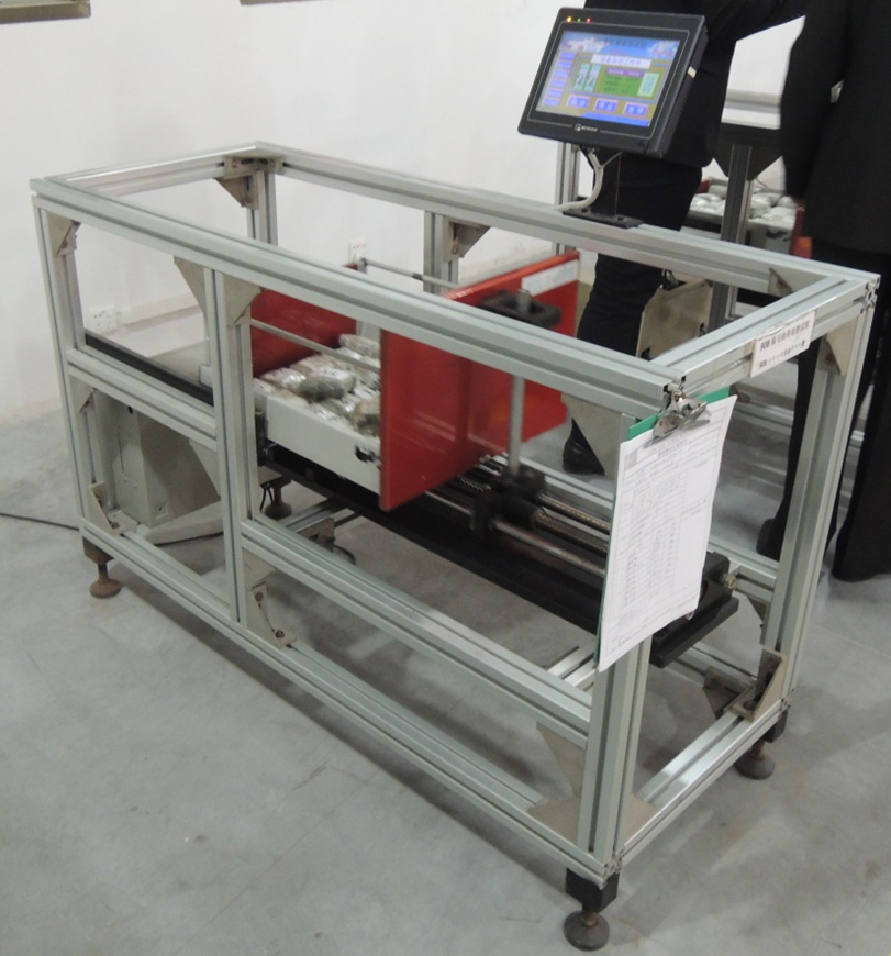 Стенд предназначен для испытания направляющих для выдвижных ящиков для мебели на долговечность. Испытания проводятся на 60000 циклов с нагрузкой на ящик в 35кг. Максимальная длина испытываемых направляющих для выдвижных ящиков -600мм.