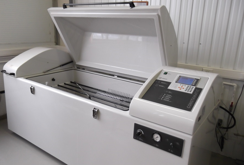 Камера предназначена для проведения испытаний покрытий оконной, дверной и мебельной фурнитуры на коррозионную стойкость, то есть на воздействие соляного тумана и конденсирующейся влаги, согласно национальным и международным стандартам. Внутренний объем камеры составляет 1000 литров и позволяет загрузить испытываемые образцы–элементы фурнитуры размером до 1400мм. Камера позволяет одновременно загружать несколько комплектов фурнитур разных производителей и объективно сравнивать полученные результаты при нахождении в одинаковых условиях испытаний. По требованиям российского ГОСТа вся фурнитура должна выдерживать 240 часов в соляном тумане, а это приблизительно 10 лет эксплуатации фурнитуры в нормальных условиях. Методики испытаний запрограммированы и сохранены в памяти, но могут быть изменены под необходимые требования и последовательность. Сегменты программ испытаний: соляной туман, вывод тумана из камеры, охлаждение, сухой нагрев.