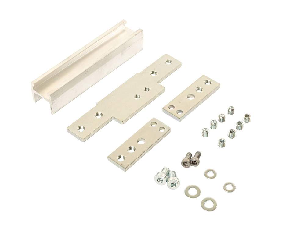 Стандартный набор - это механика привода. Состав: электромеханический замок, 2 каретки, ограничитель, кронштейны и другие элементы.
