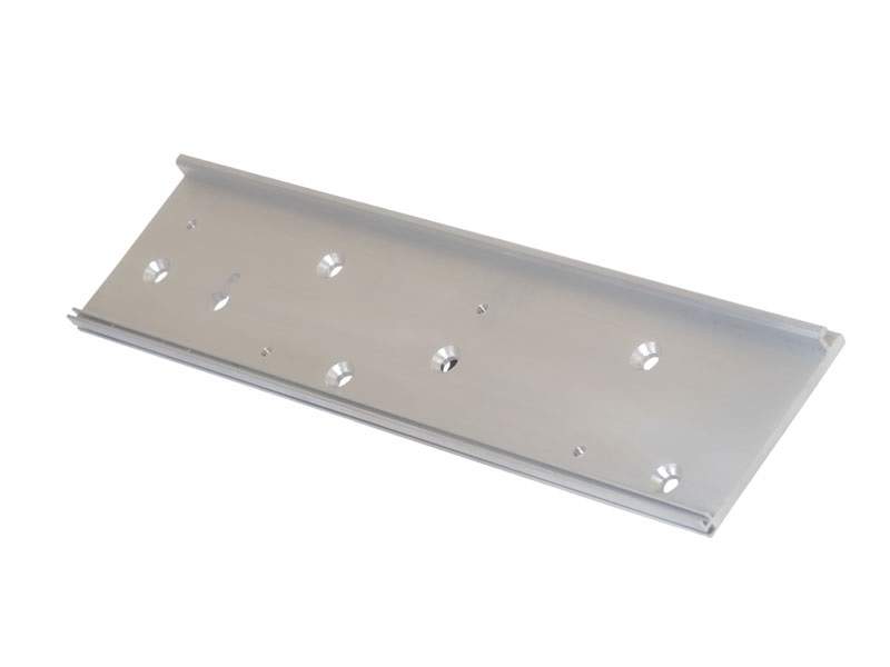 Монтажная пластина служит для более легкого монтажа и более точного позиционирования привода раздвижной автоматической двери Dorma на проем, а также придает дополнительную жёсткость конструкции короба привода (особенно важно при монтаже двери на неидеально ровную поверхность). Дополнительно, для защиты верхней части зоны прохода от продувания в монтажной пластине имеется специальный паз для щеточного уплотнителя.
